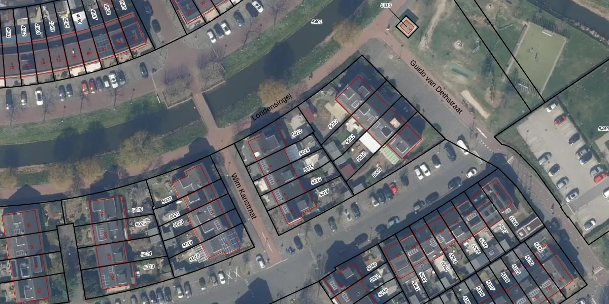 Gebruik de zoekbalk of klik op een perceel om informatie over het perceel te bekijken.
