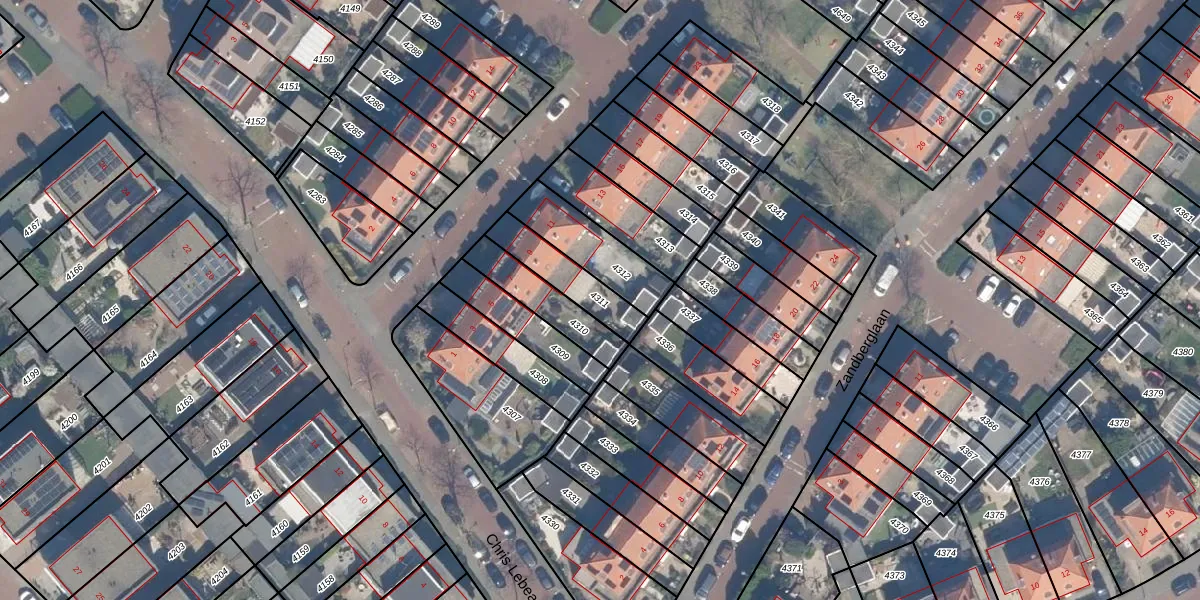 Gebruik de zoekbalk of klik op een perceel om informatie over het perceel te bekijken.