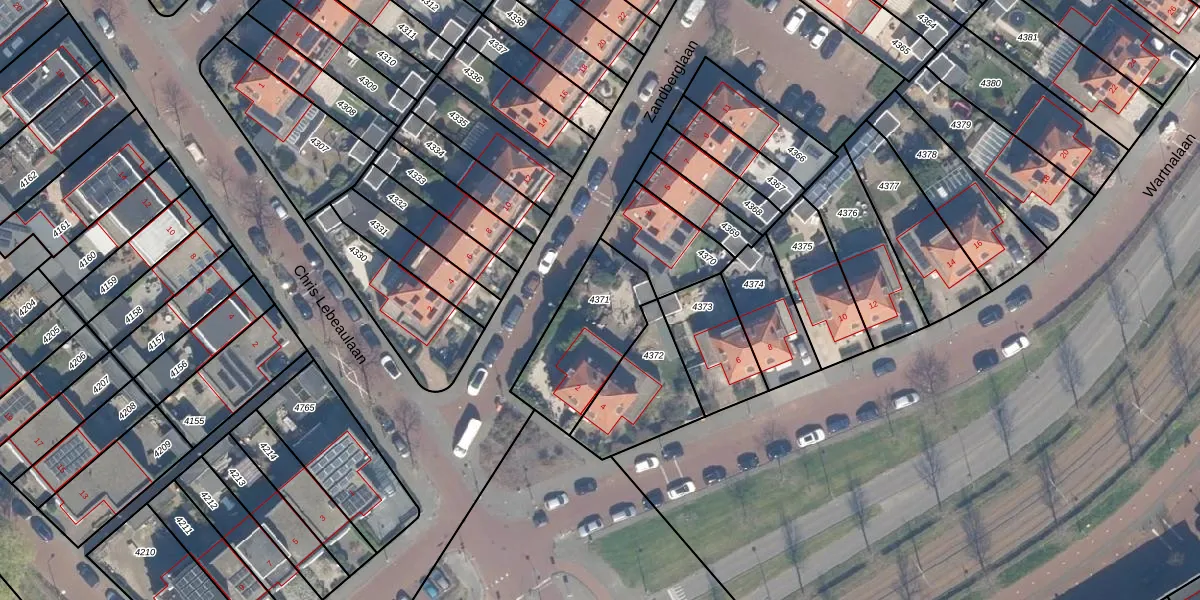 Gebruik de zoekbalk of klik op een perceel om informatie over het perceel te bekijken.
