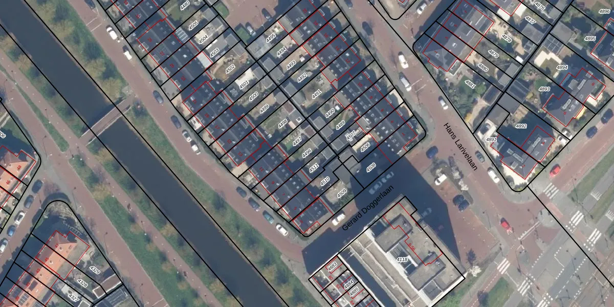 Gebruik de zoekbalk of klik op een perceel om informatie over het perceel te bekijken.
