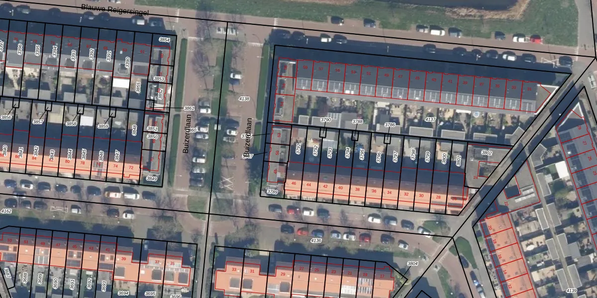 Gebruik de zoekbalk of klik op een perceel om informatie over het perceel te bekijken.