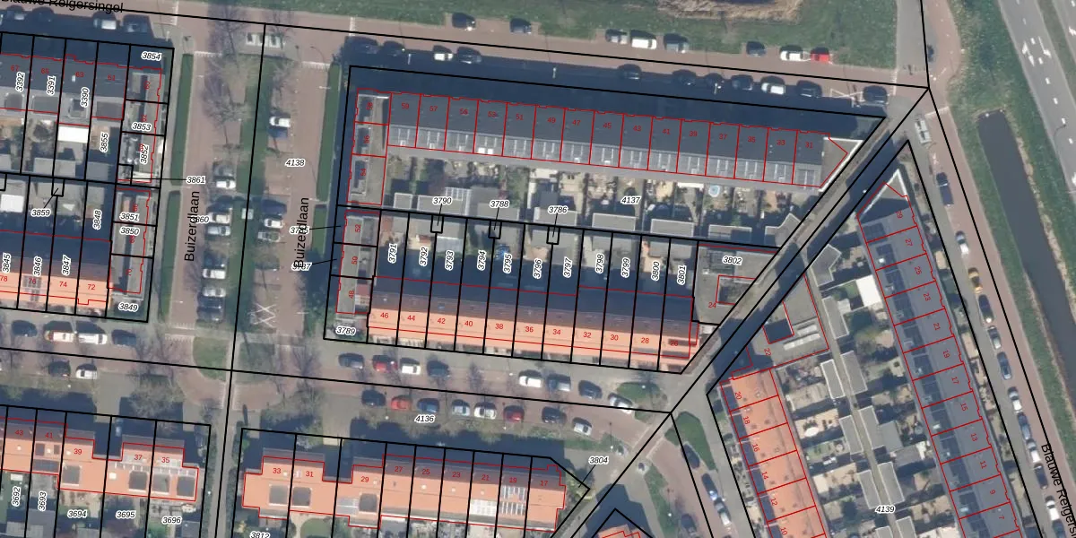 Gebruik de zoekbalk of klik op een perceel om informatie over het perceel te bekijken.