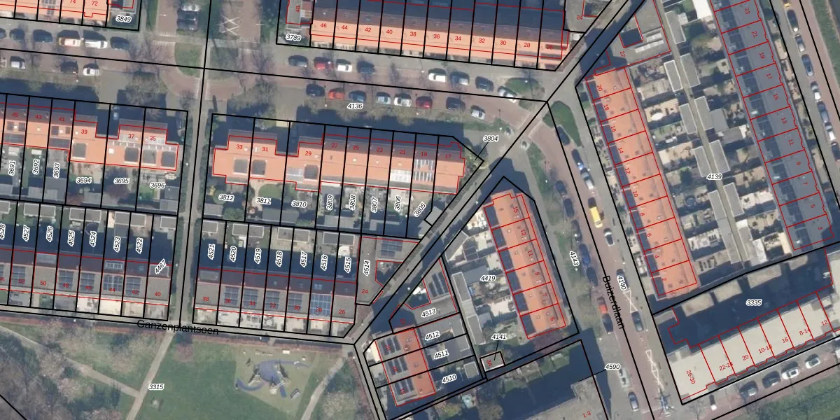 Gebruik de zoekbalk of klik op een perceel om informatie over het perceel te bekijken.