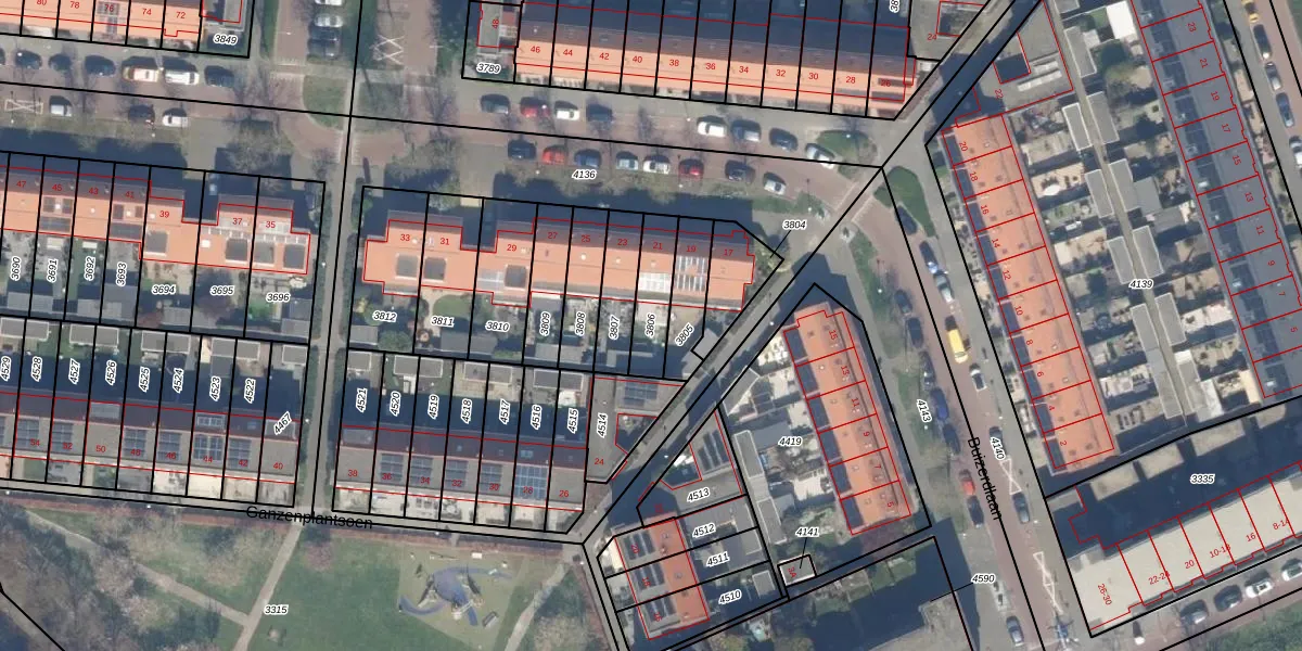 Gebruik de zoekbalk of klik op een perceel om informatie over het perceel te bekijken.