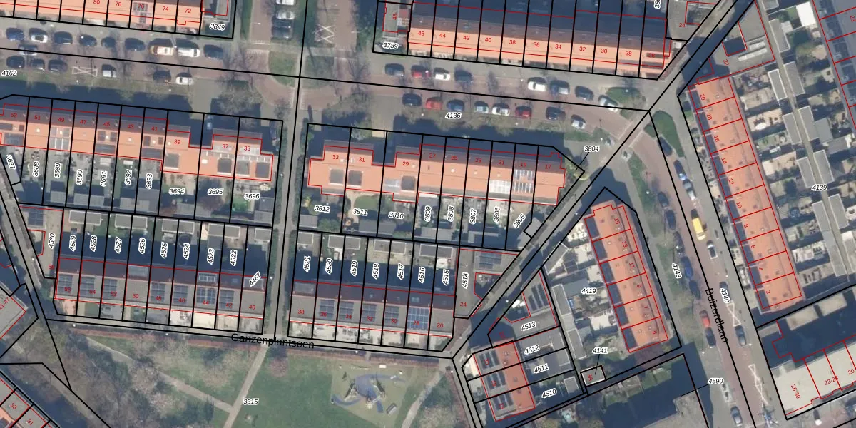 Gebruik de zoekbalk of klik op een perceel om informatie over het perceel te bekijken.