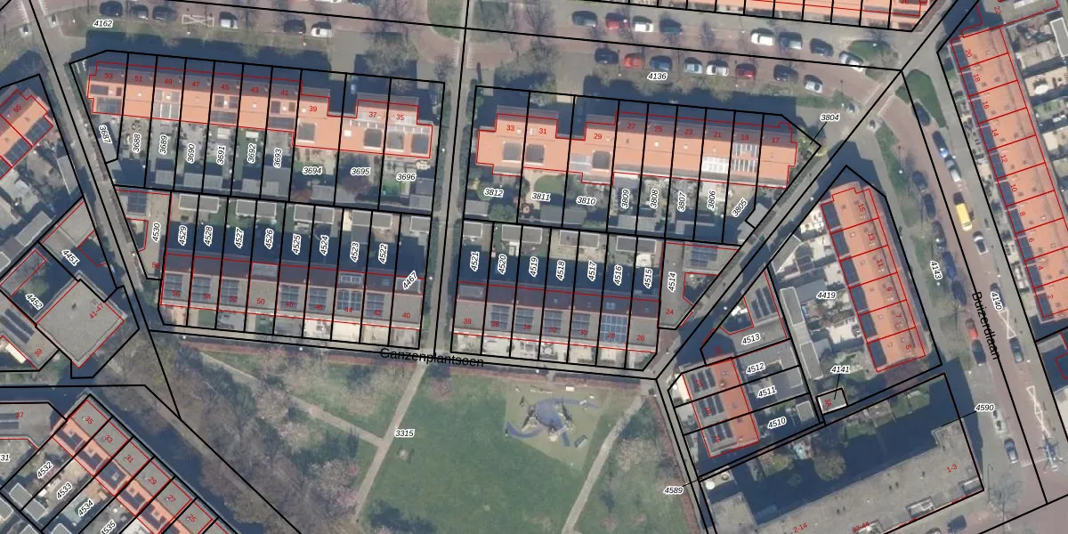 Gebruik de zoekbalk of klik op een perceel om informatie over het perceel te bekijken.