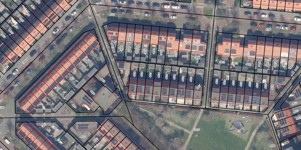 Gebruik de zoekbalk of klik op een perceel om informatie over het perceel te bekijken.