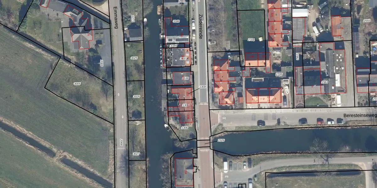 Gebruik de zoekbalk of klik op een perceel om informatie over het perceel te bekijken.