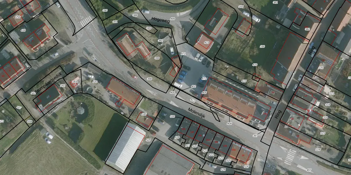 Gebruik de zoekbalk of klik op een perceel om informatie over het perceel te bekijken.