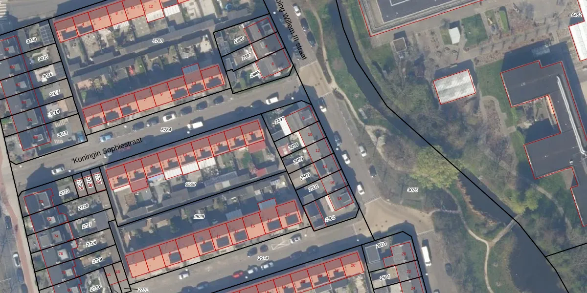 Gebruik de zoekbalk of klik op een perceel om informatie over het perceel te bekijken.