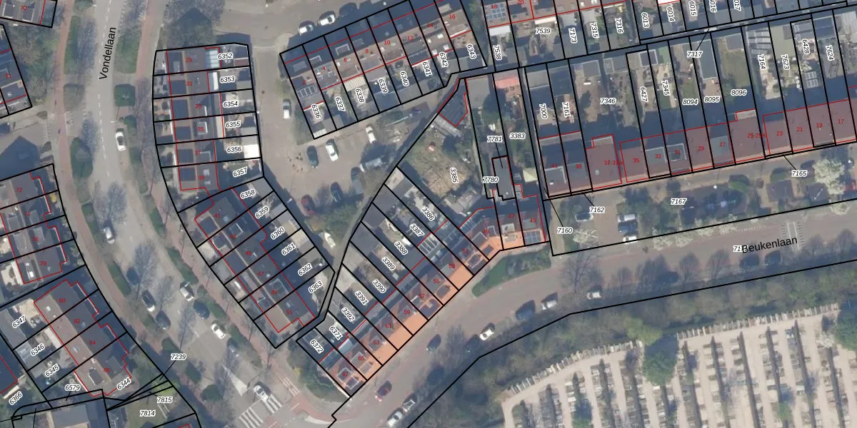 Gebruik de zoekbalk of klik op een perceel om informatie over het perceel te bekijken.