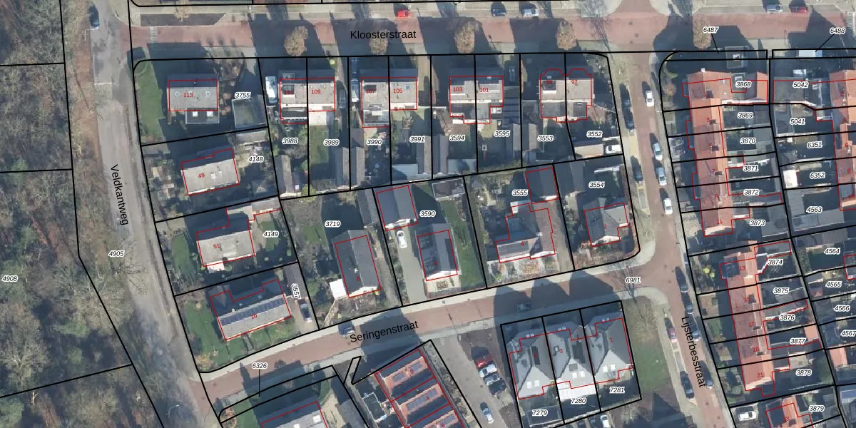 Gebruik de zoekbalk of klik op een perceel om informatie over het perceel te bekijken.