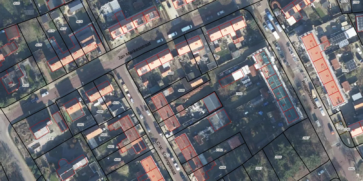Gebruik de zoekbalk of klik op een perceel om informatie over het perceel te bekijken.