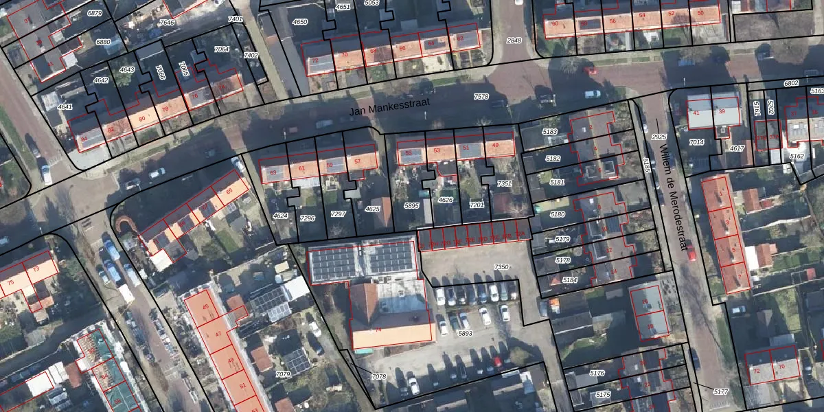 Gebruik de zoekbalk of klik op een perceel om informatie over het perceel te bekijken.