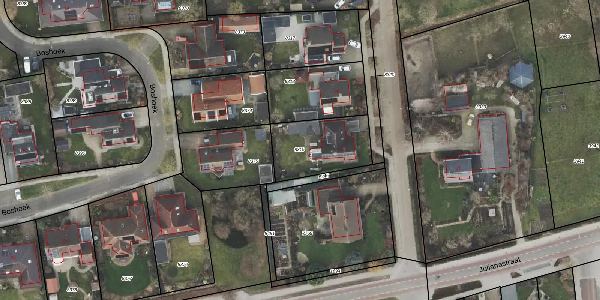 Gebruik de zoekbalk of klik op een perceel om informatie over het perceel te bekijken.