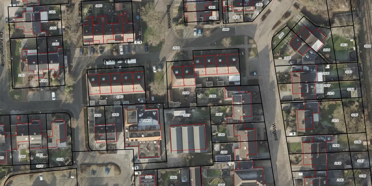 Gebruik de zoekbalk of klik op een perceel om informatie over het perceel te bekijken.