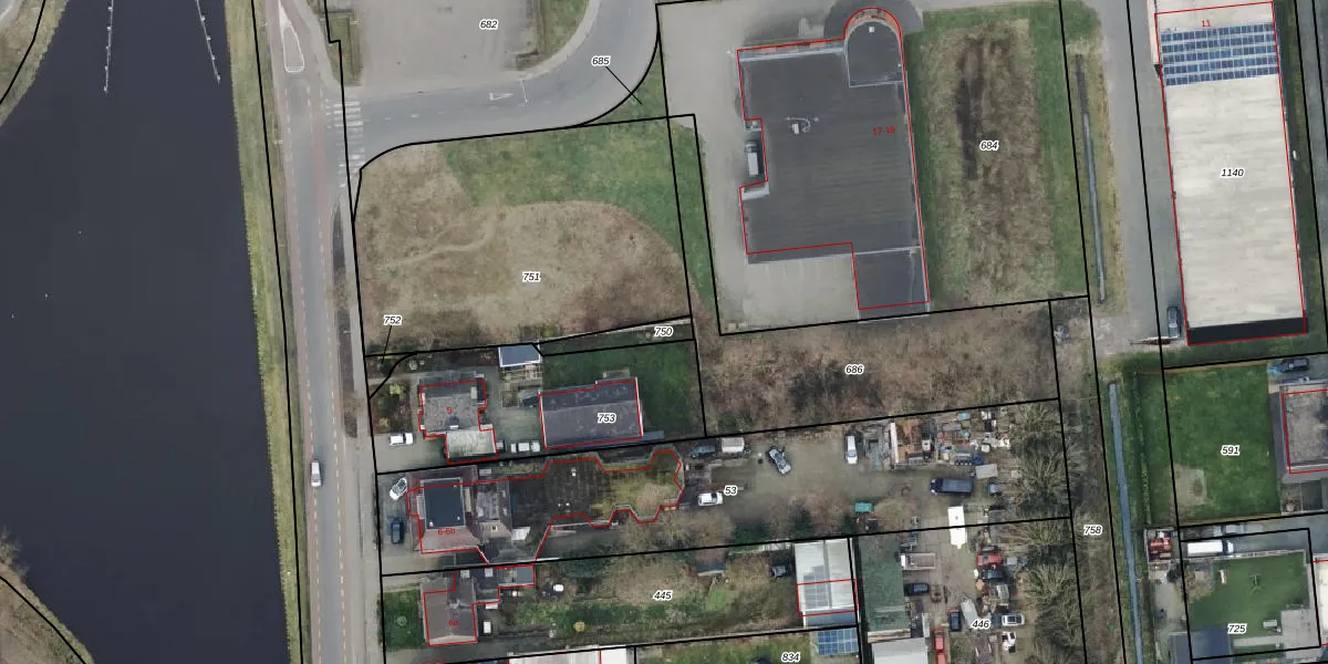 Gebruik de zoekbalk of klik op een perceel om informatie over het perceel te bekijken.