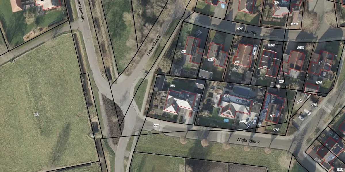 Gebruik de zoekbalk of klik op een perceel om informatie over het perceel te bekijken.