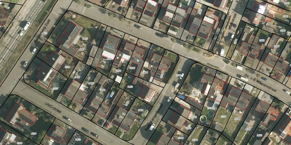 Gebruik de zoekbalk of klik op een perceel om informatie over het perceel te bekijken.