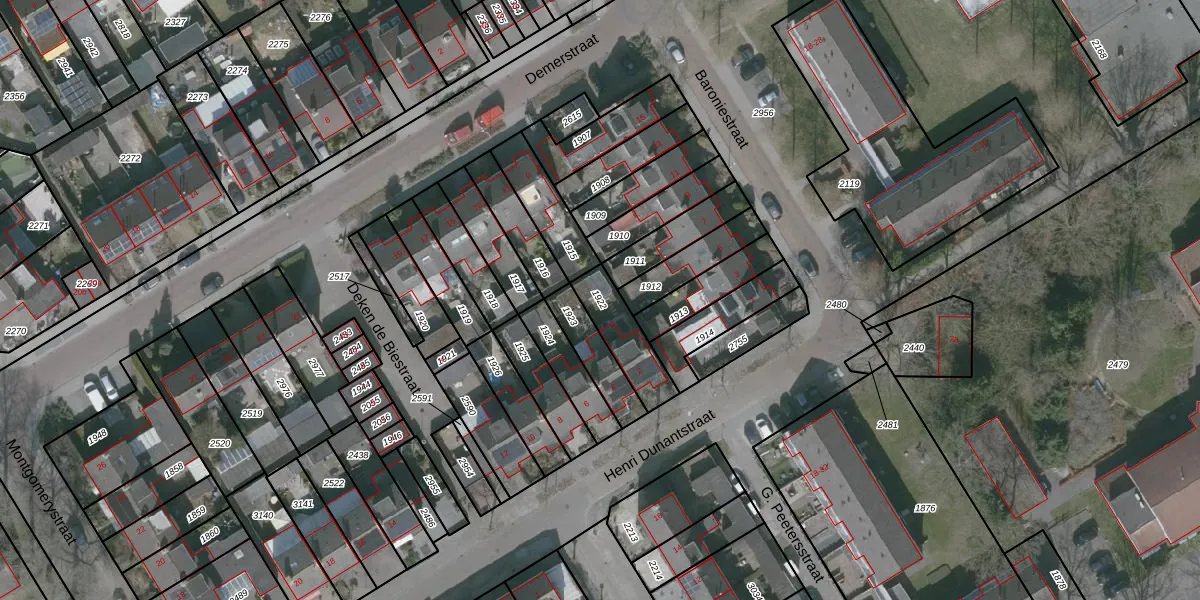 Gebruik de zoekbalk of klik op een perceel om informatie over het perceel te bekijken.