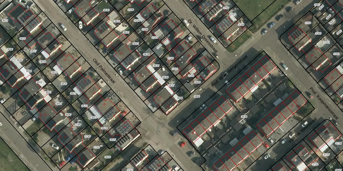 Gebruik de zoekbalk of klik op een perceel om informatie over het perceel te bekijken.