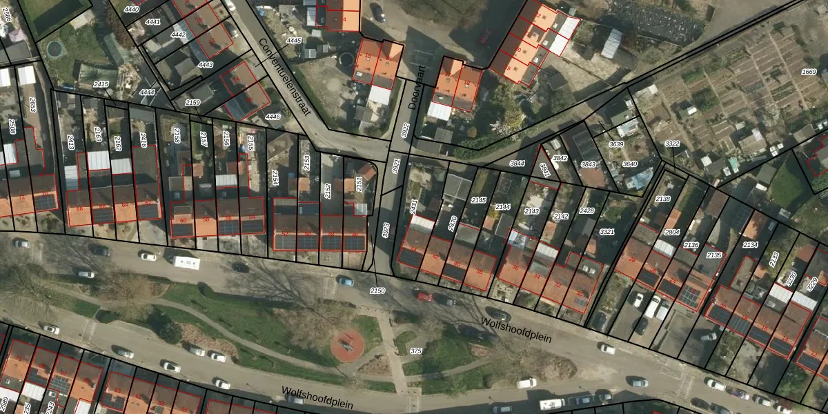 Gebruik de zoekbalk of klik op een perceel om informatie over het perceel te bekijken.