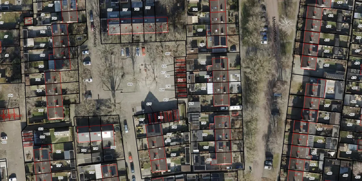Gebruik de zoekbalk of klik op een perceel om informatie over het perceel te bekijken.