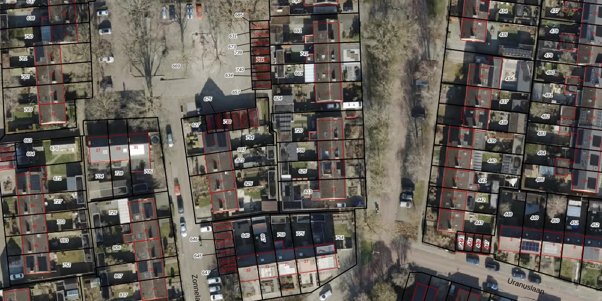 Gebruik de zoekbalk of klik op een perceel om informatie over het perceel te bekijken.