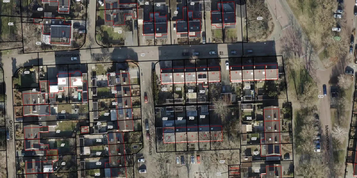 Gebruik de zoekbalk of klik op een perceel om informatie over het perceel te bekijken.