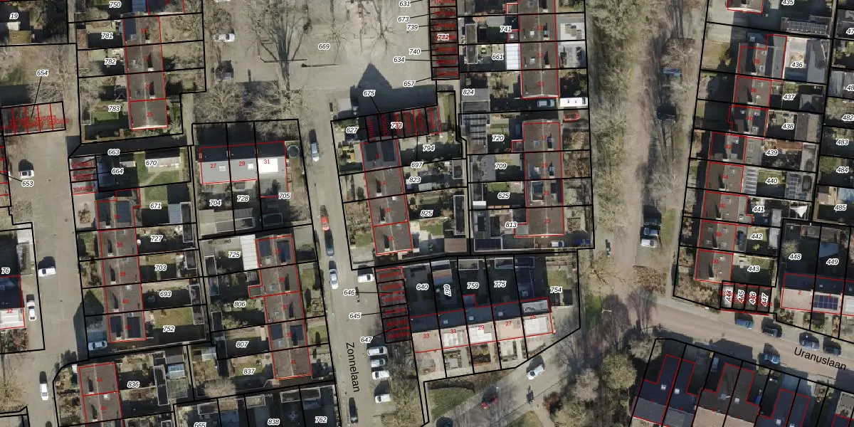 Gebruik de zoekbalk of klik op een perceel om informatie over het perceel te bekijken.