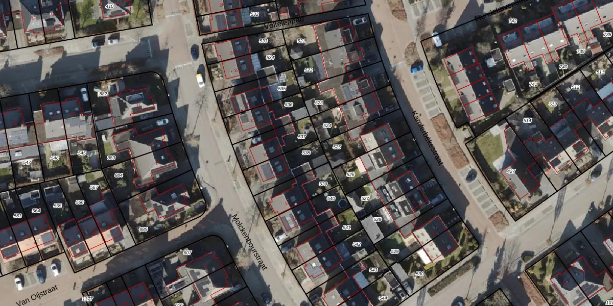 Gebruik de zoekbalk of klik op een perceel om informatie over het perceel te bekijken.