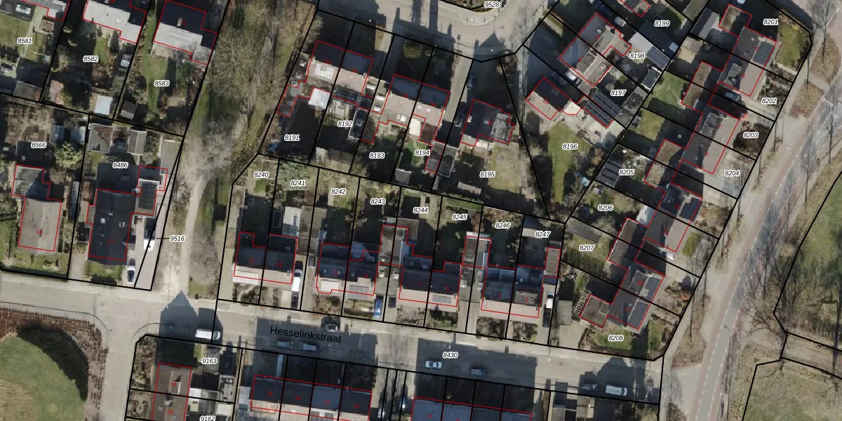 Gebruik de zoekbalk of klik op een perceel om informatie over het perceel te bekijken.