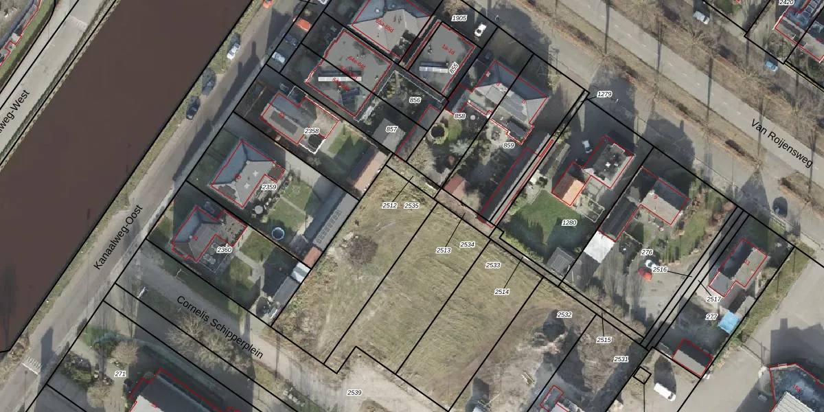 Gebruik de zoekbalk of klik op een perceel om informatie over het perceel te bekijken.