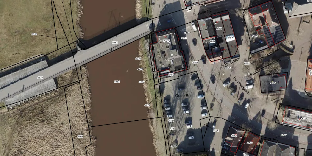Gebruik de zoekbalk of klik op een perceel om informatie over het perceel te bekijken.