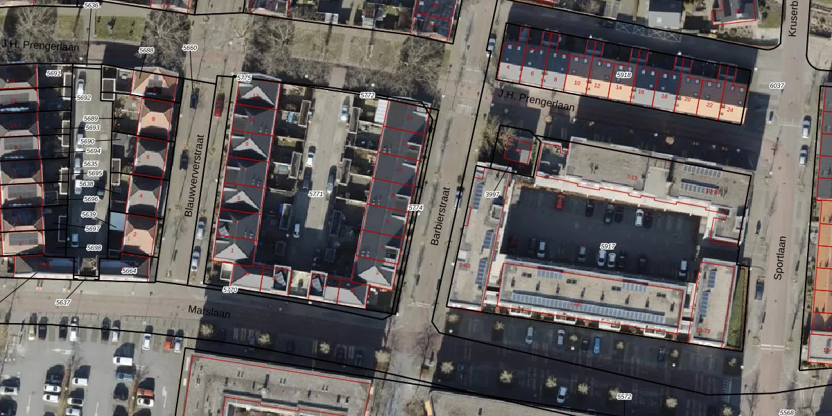 Gebruik de zoekbalk of klik op een perceel om informatie over het perceel te bekijken.