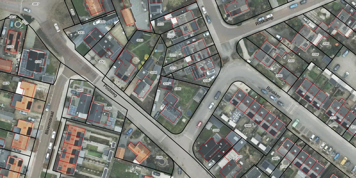 Gebruik de zoekbalk of klik op een perceel om informatie over het perceel te bekijken.