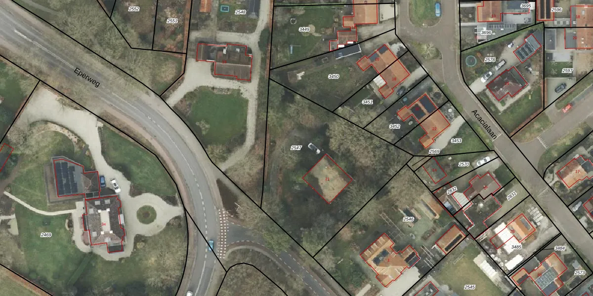 Gebruik de zoekbalk of klik op een perceel om informatie over het perceel te bekijken.
