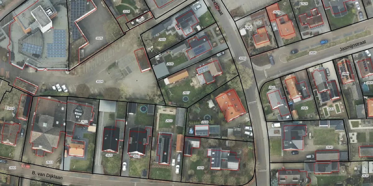 Gebruik de zoekbalk of klik op een perceel om informatie over het perceel te bekijken.