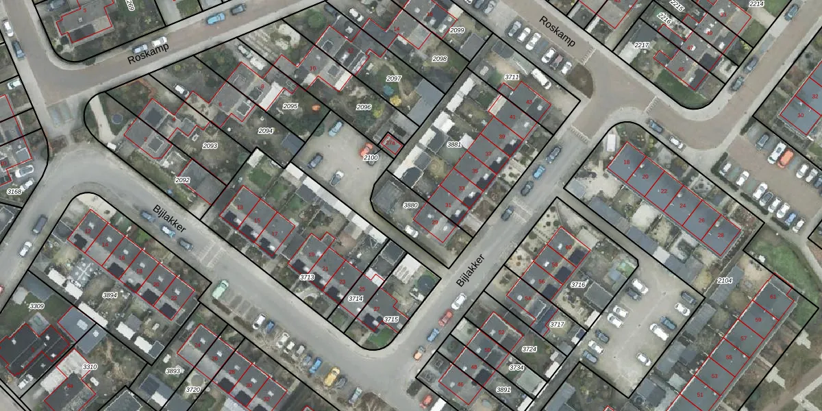 Gebruik de zoekbalk of klik op een perceel om informatie over het perceel te bekijken.