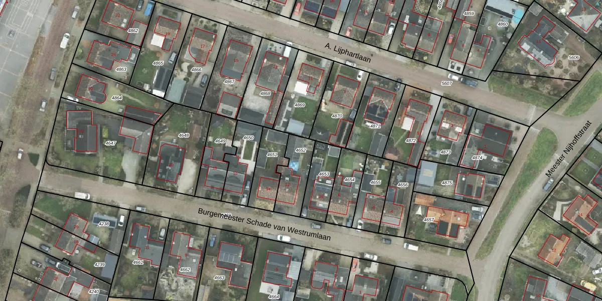 Gebruik de zoekbalk of klik op een perceel om informatie over het perceel te bekijken.