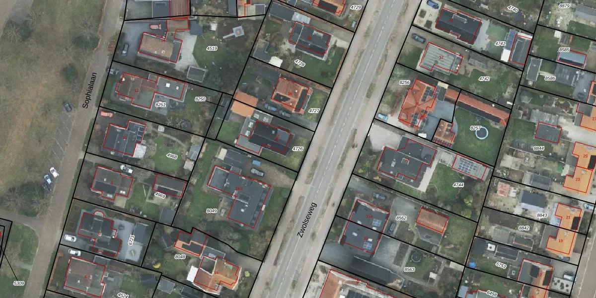 Gebruik de zoekbalk of klik op een perceel om informatie over het perceel te bekijken.