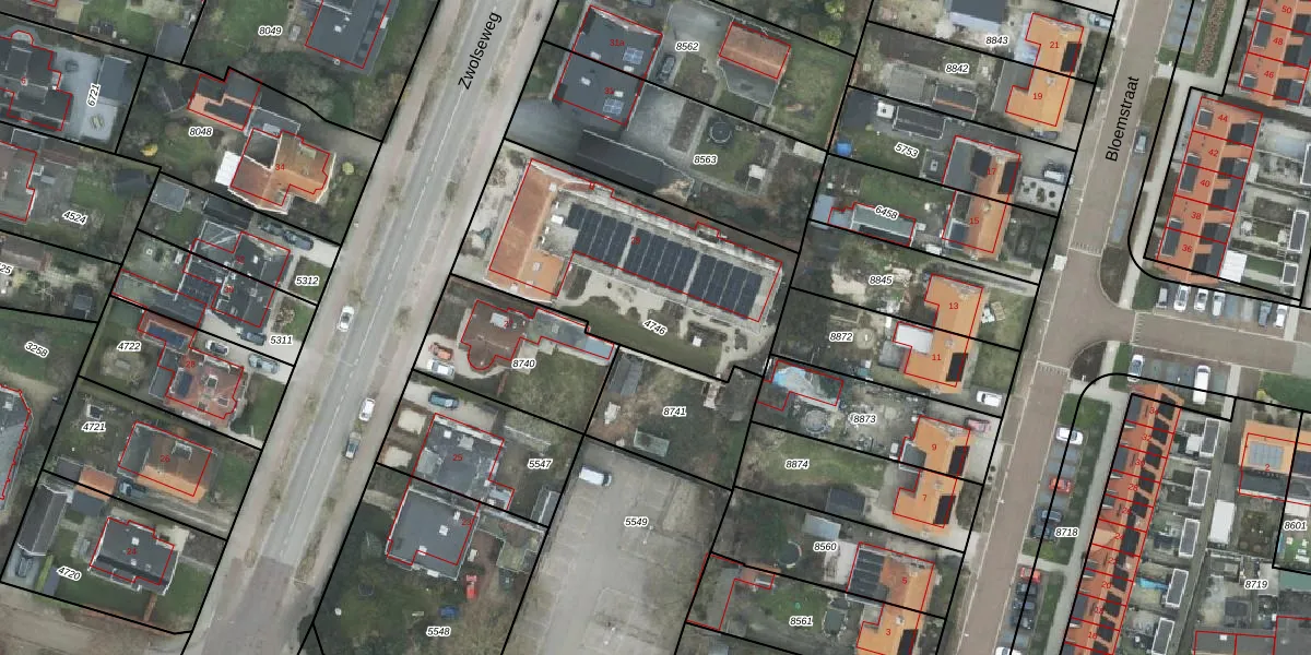 Gebruik de zoekbalk of klik op een perceel om informatie over het perceel te bekijken.