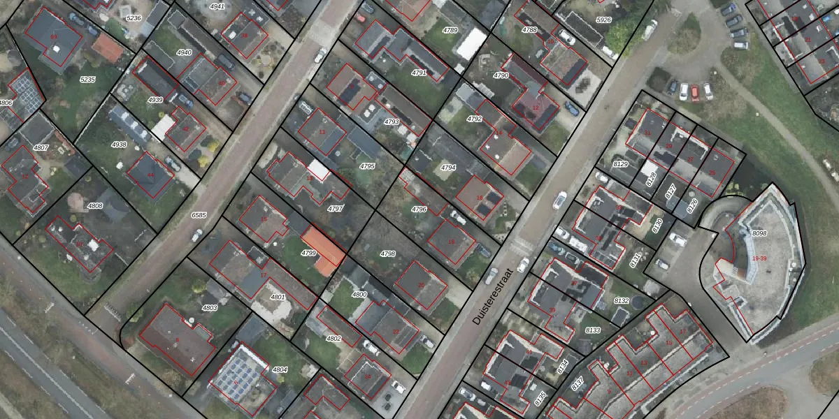 Gebruik de zoekbalk of klik op een perceel om informatie over het perceel te bekijken.