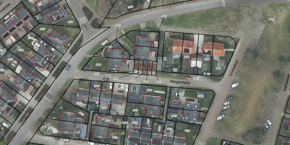 Gebruik de zoekbalk of klik op een perceel om informatie over het perceel te bekijken.