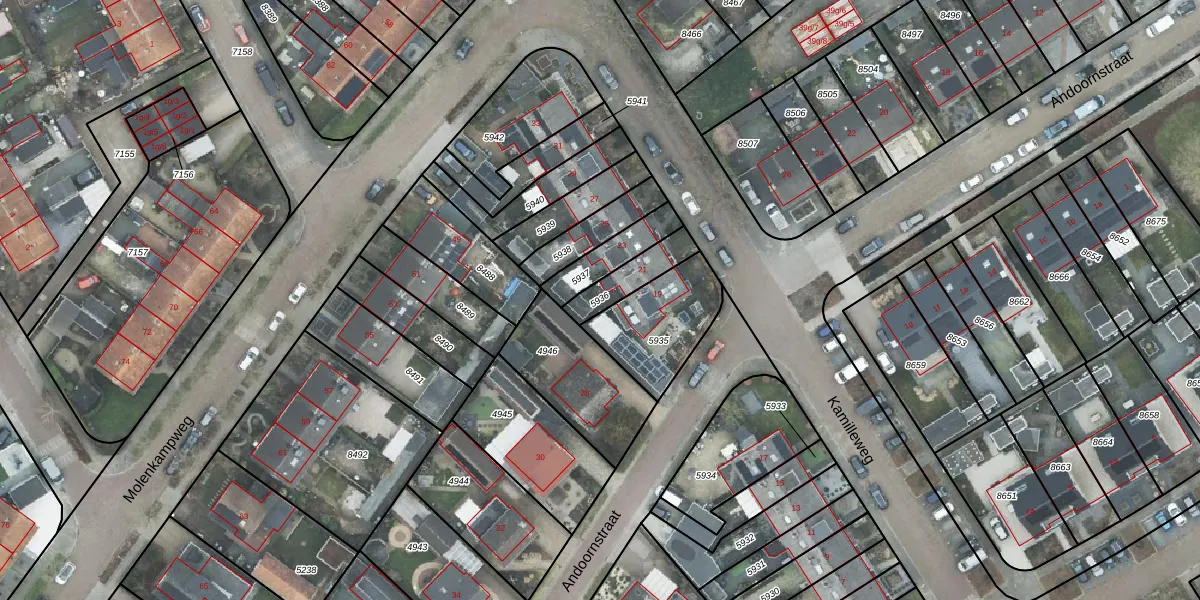 Gebruik de zoekbalk of klik op een perceel om informatie over het perceel te bekijken.