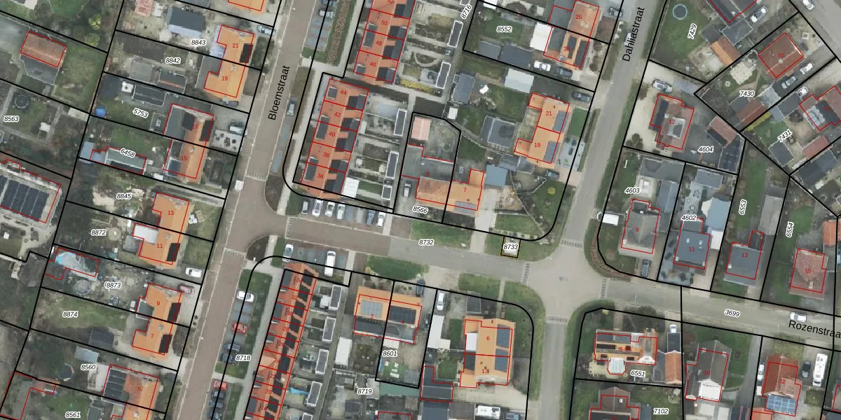 Gebruik de zoekbalk of klik op een perceel om informatie over het perceel te bekijken.