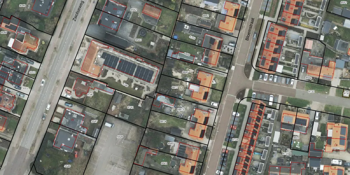 Gebruik de zoekbalk of klik op een perceel om informatie over het perceel te bekijken.