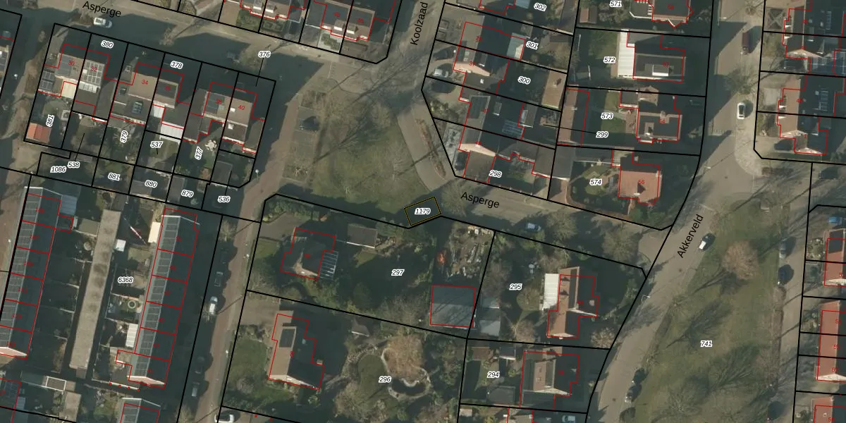 Gebruik de zoekbalk of klik op een perceel om informatie over het perceel te bekijken.