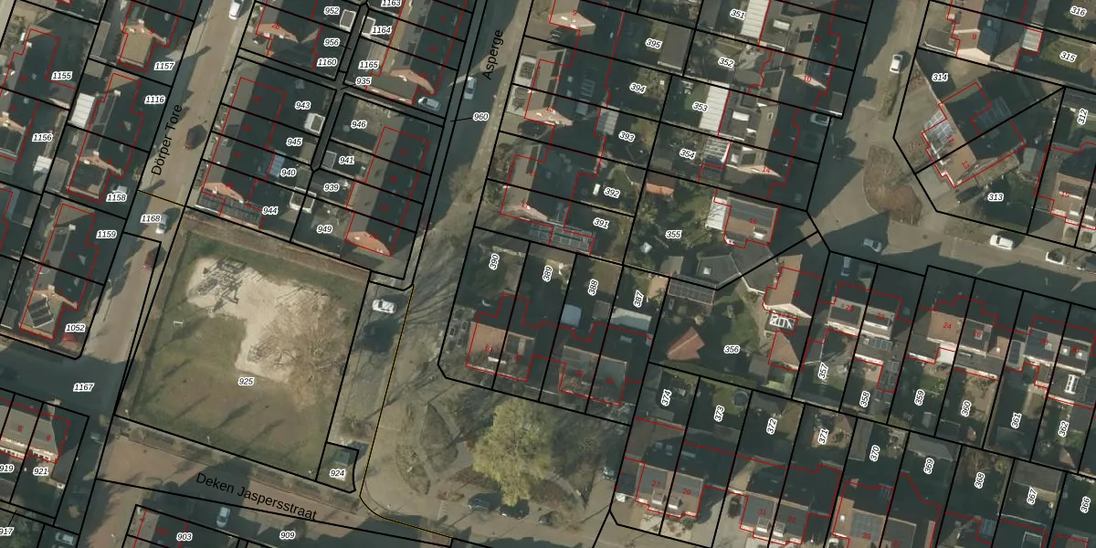 Gebruik de zoekbalk of klik op een perceel om informatie over het perceel te bekijken.