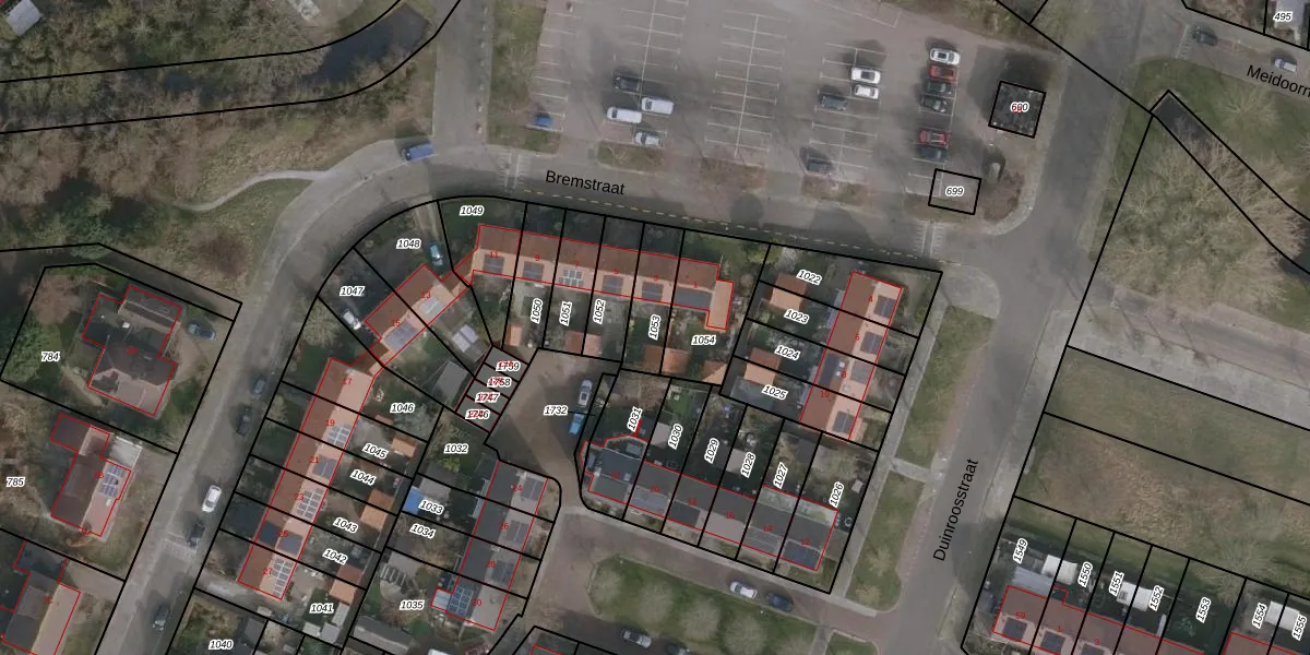 Gebruik de zoekbalk of klik op een perceel om informatie over het perceel te bekijken.